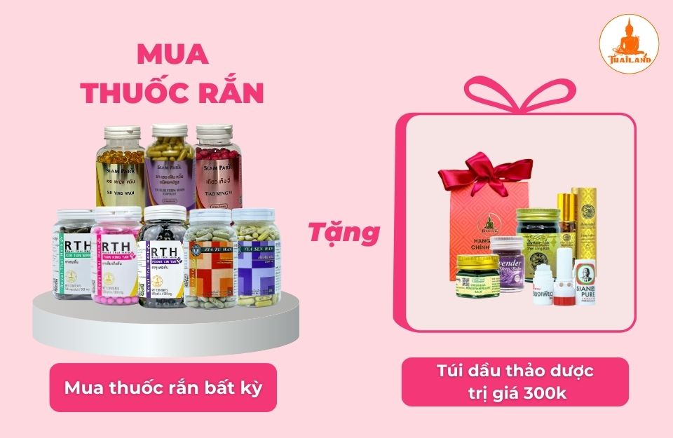 Thuốc rắn: Mua bất kỳ sản phẩm thuốc rắn nào đều được tặng ngay túi dầu thảo dược trị giá 300.000 đồng.