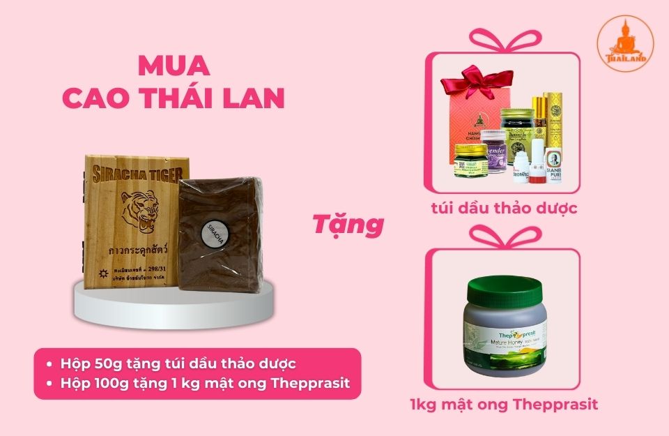 - Mua cao Thái Lan cỡ nhỏ: Tặng túi dầu thảo dược trị giá 300.000 đồng.