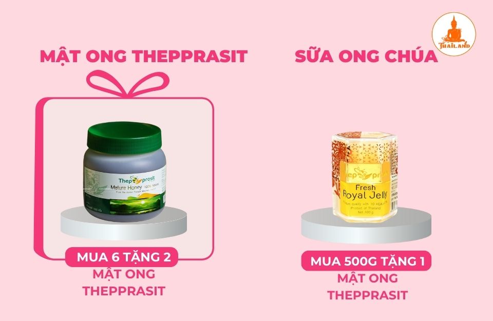 - Mua 500g sữa ong chúa: Tặng 1 hũ mật ong Thepprasit trị giá 920.000 đồng.