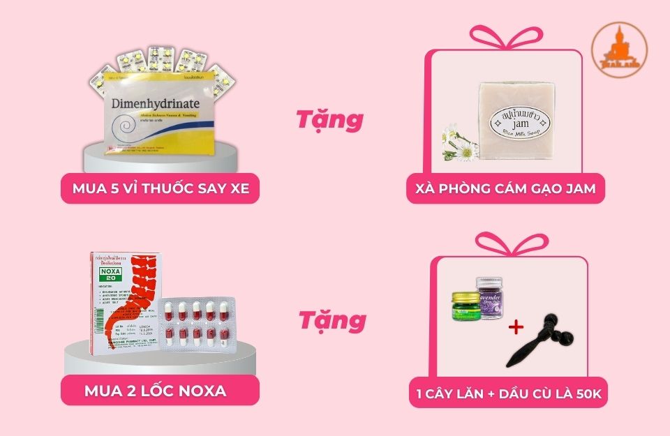 - Mua 5 vỉ thuốc say xe: Tặng xà phòng cám gạo Jam trị giá 12.000 đồng.