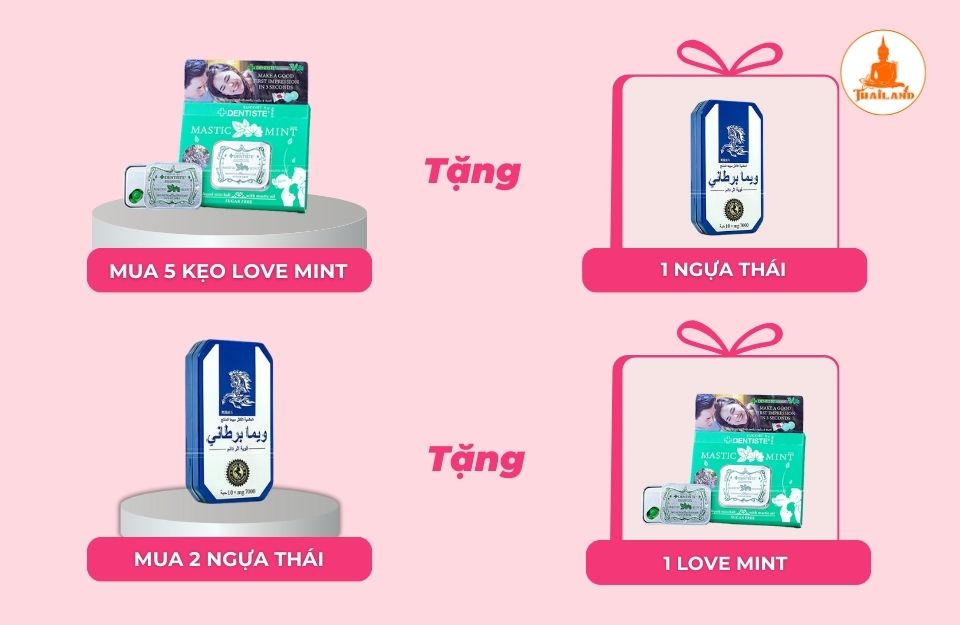 - Mua 2 viên Ngựa Thái: Tặng 1 viên Love Mint.