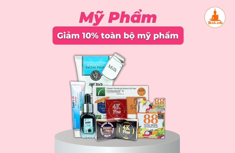 Mỹ phẩm: Giảm giá 10% toàn bộ sản phẩm mỹ phẩm