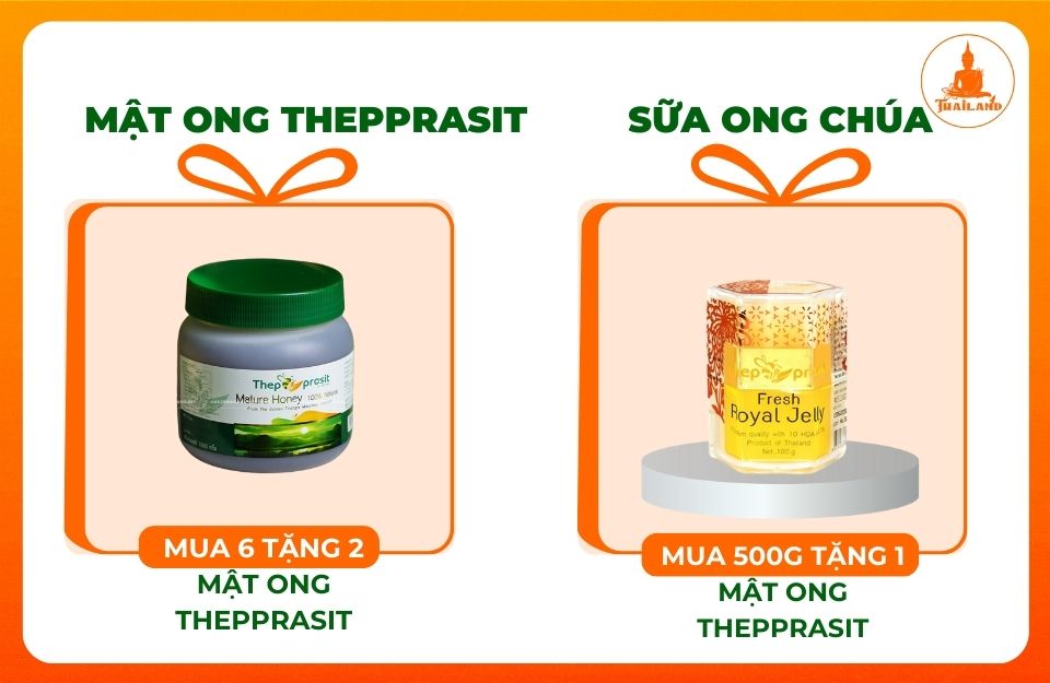 - Mua 500g sữa ong chúa: Tặng 1 hũ mật ong Thepprasit trị giá 920.000 VNĐ.
