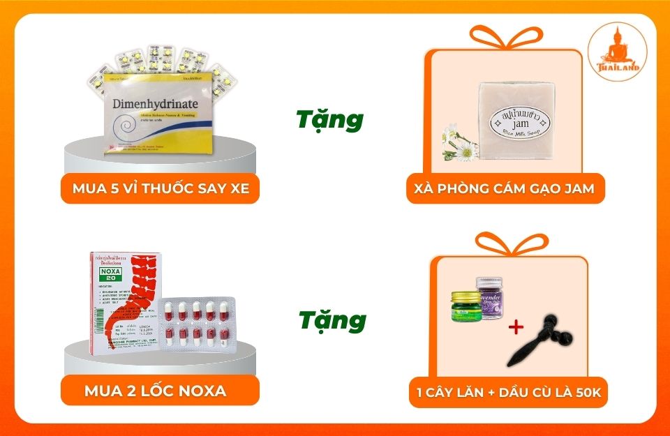 - Mua 5 vỉ thuốc say xe: Tặng xà phòng cám gạo Jam trị giá 12.000 VNĐ.