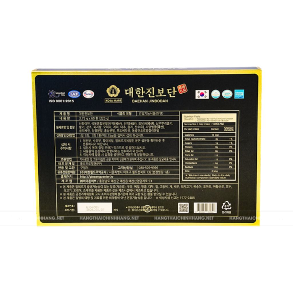 An Cung Chính Phủ Rồng Vàng Daehan Jinbodan được bào chế dựa trên công thức cổ truyền lâu đời, kết hợp nghiên cứu hiện đại để tối ưu công dụng. Thành phần nổi bật gồm: