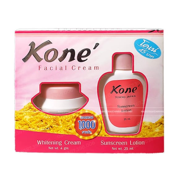 Bộ kem chống nắng và làm trắng Facial Cream Kone là dòng sản phẩm rất được ưa chuộng tại thị trường Thái Lan về công dụng làm trắng da. Với nhiều dưỡng chất chống nắng và dưỡng trắng da từ sâu bên trong cùng kết cấu mỏng nhẹ dễ dàng hấp thụ qua da, mang đến cho bạn một làn da trắng sáng, mịn màng: