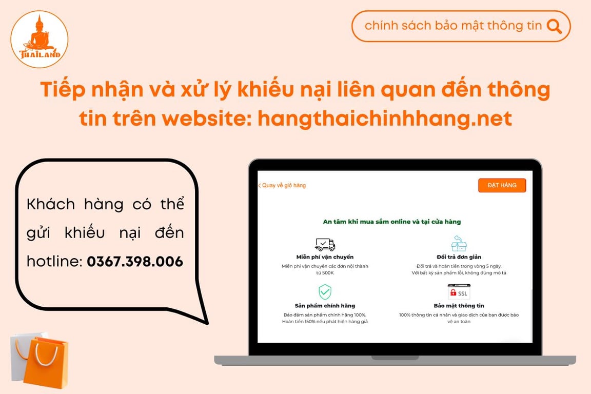 Nếu phát hiện thông tin cá nhân bị sử dụng sai mục đích, khách hàng có thể gửi khiếu nại đến Hàng Thái Chính Hãng