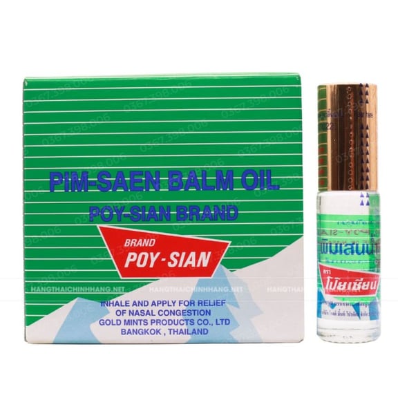 Tại thị trường Việt Nam rất ưa chuộng sử dụng các sản phẩm dầu nóng xuất xứ từ Thái Lan. Và chắc hẳn không ai là không biết đến lọ dầu “thần thánh” thường xuất hiện trong túi xách hay trên bàn làm việc mỗi người, đó chính là dầu Pim Saen Balm Oil Poy Sian Brand - lọ dầu thủy tinh 5cc được thiết kế nhỏ gọn, với đầu lăn giúp dễ dàng thoa lên vết thương cũng như giúp hạn chế việc dầu bị đổ ra ngoài. Thông thường người ta thường sử dụng dầu như một sản phẩm làm thông mũi và bôi lên những vùng da bị côn trùng cắn.