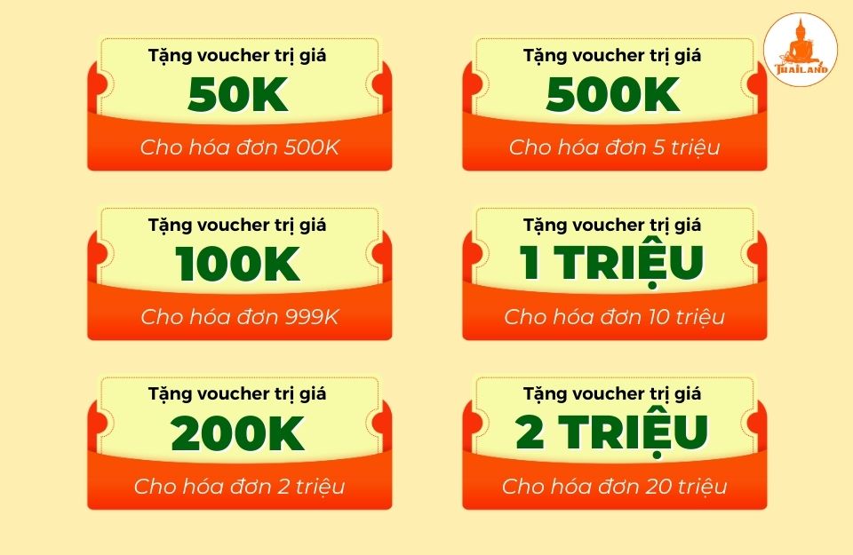 - Với hóa đơn 5.000.000 vnd bạn sẽ được tặng voucher trị giá 500.000 vnd